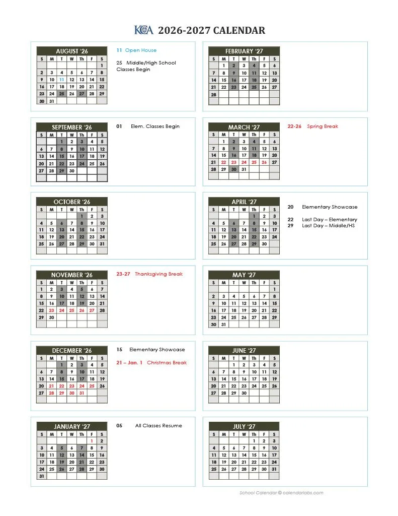 2026/2027 School Year